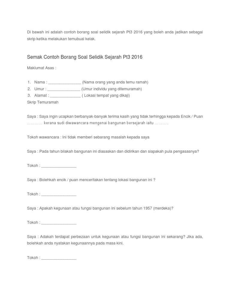 Kerja kursus sejarah pt3 tingkatan 3 2022 contoh rujukan terbaik untuk anda semak bagi tugasan sejarah. Contoh Kerangka Kasar Sejarah PT3 2022. Contoh Skrip Temu Bual Orang Sumber Lampiran Nama Puan Binti No Kp Umur Tahunalamat Pada 5 Mei 2013 Positive Quotes.